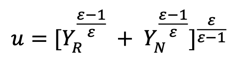 Allo stesso modo, il valore di ε dipende da come sono considerati i due diversi settori descritti nel modello. Se si immaginano i due settori come diversi ma appartenenti alla stessa nazione (ad esempio i settori automotive e costruzione italiani), la sostituzione potrebbe essere limitata e ε potrebbe essere piccolo. Se invece interpretiamo i due settori come uguali ma appartenenti a due nazioni diverse (ad esempio il settore automotive di Germania e Italia),la sostituzione potrebbe essere grande e quindi ε potrebbe assumere un valore elevato.