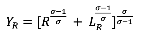 Il lavoro nei due settori sarà denominato 𝐿𝑅 e 𝐿𝑁 nel caso in cui sia relativo al settore con i robot e nel caso in cui invece sia relativo al settore senza robot. Le funzioni di produzione dei due settori sono rispettivamente: