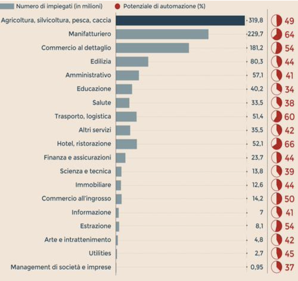 Figura 1 – Tasso di sostituibilità dei lavoratori per settore [Fonte: www.lavocedellelotte.it].